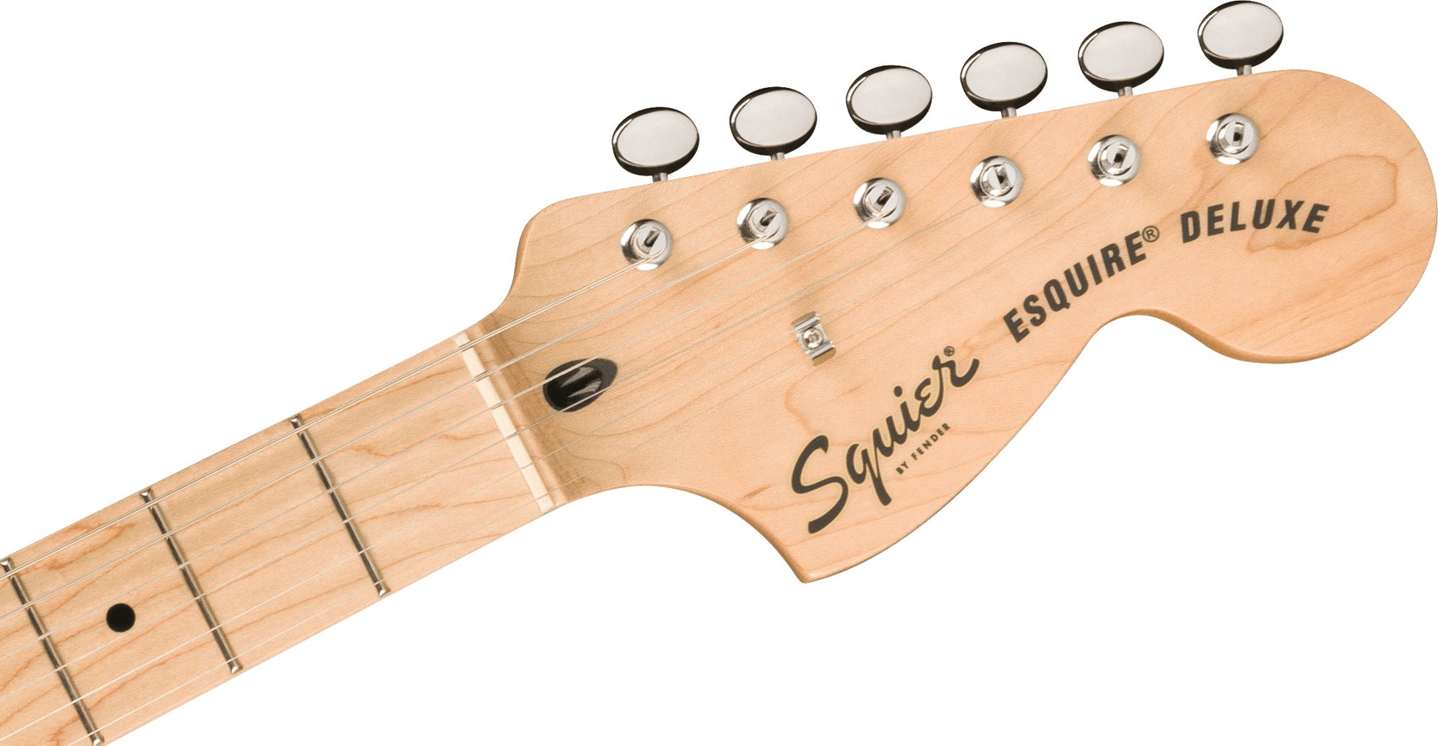 The Paranormal Esquire® Deluxe imagines what the very first Fender model would have looked like if it had evolved into the 1970s, combining single pickup simplicity with innovative functionality and styling cues of the era. Multiple tonal personalities of the Fender-Designed Wide Range pickup are accessible via the 3-way rotary switch which selects single-coil, humbucking, or humbucking with volume and tone bypass settings. Other details include a vintage-style string-through-body hardtail bridge for optimal body resonance, a slim and comfortable "C"-shape neck profile with a slick gloss finish, and vintage-style tuning machines for smooth, accurate tuning.